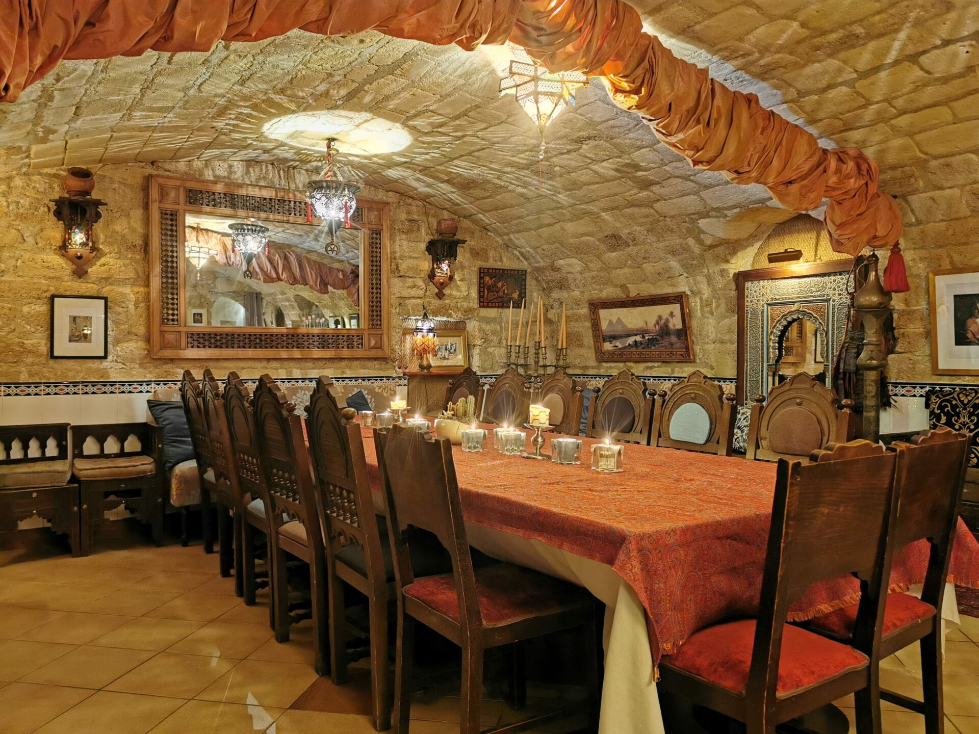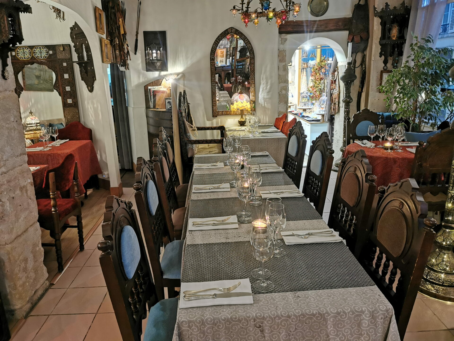 Notre lieu peut être entièrement privatisé pour garantir l’intimité de vos échanges. Nous accueillons jusqu’à 80 personnes pour un repas assis traditionnel et jusqu’à 100 personnes en format cocktail dînatoire. Cette modularité permet de recevoir aussi bien des dîners d’affaires confidentiels que des célébrations familiales de grande envergure dans une décoration digne des Mille et Une Nuits.